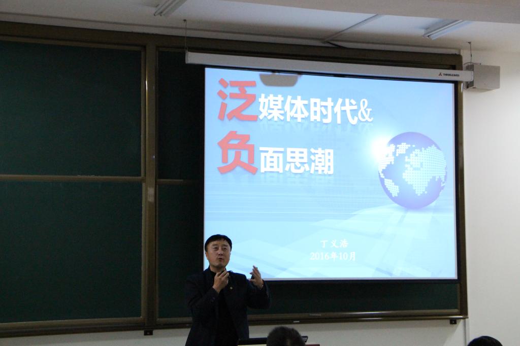 11月2日晚6时30分,beat365官网唯一党委宣传部部长丁义浩于信息学馆A308室为第九期青马学员带来“泛媒体时代和负面思潮”主题讲座,青马学员悉数到场。