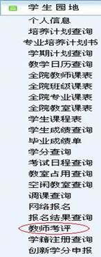 (3)进入“查询中心”以后,点击左侧的“学生园地”下的“教师考评”,进入学期考评选择页面;