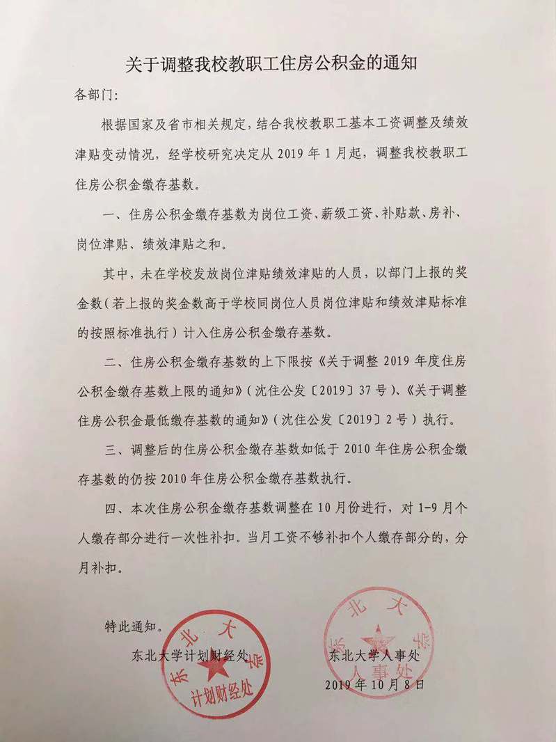关于调整我校教职工住房公积金的通知