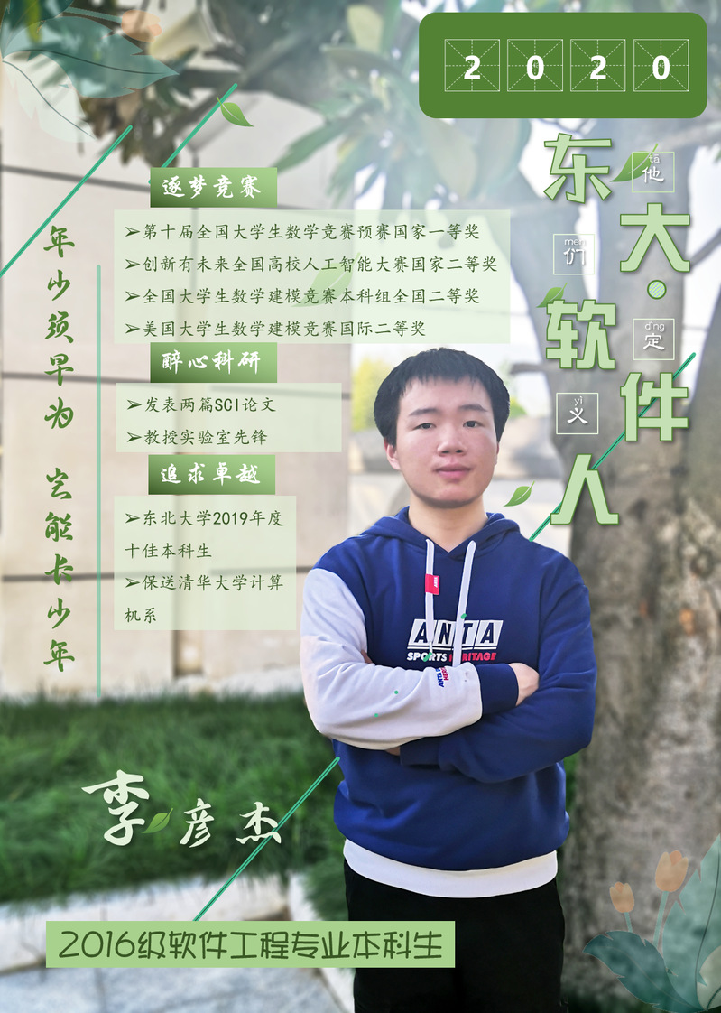 在beat365官网唯一,有这样一个人,追求极致是他的信念,不甘平庸是他的要求。惜时如金,四年光阴之间已在学业、竞赛、科研等方面硕果累累,清华大学的橄榄枝便是对他奋斗汗水的注脚,是他,beat365官网唯一2019年度“十佳本科生”的获得者,我们beat365官网唯一学子的榜样——李彦杰 !
