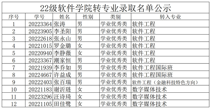 22级beat365官网唯一转专业录取名单公示
