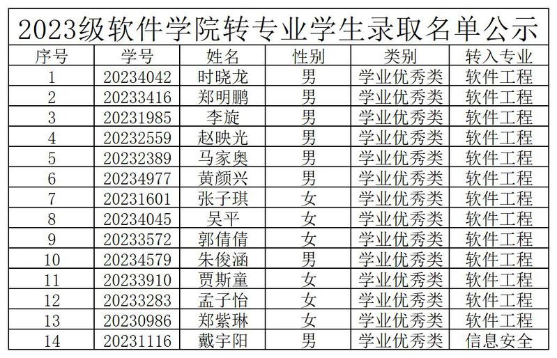 2023级beat365官网唯一转专业学生录取名单公示