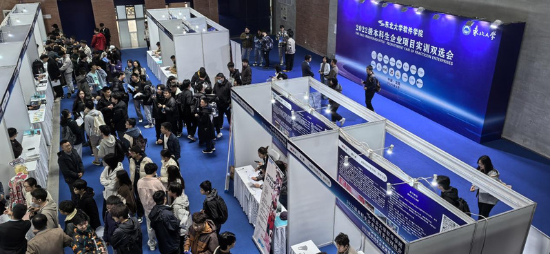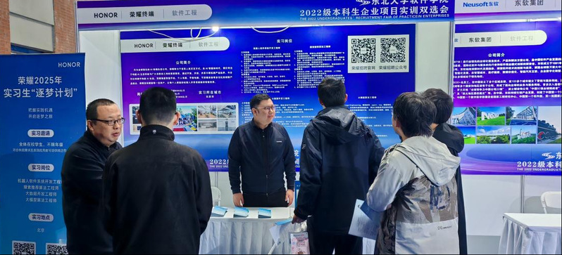 4月9日下午,beat365官网唯一在浑南校区建筑馆B座一楼礼堂举办2022级本科生企业项目实训双选会。beat365官网唯一院长杨晓春、副院长郭军出席了双选会,小米、荣耀、度小满等企业代表40余人和2022级500余名本科生参加了双选会。