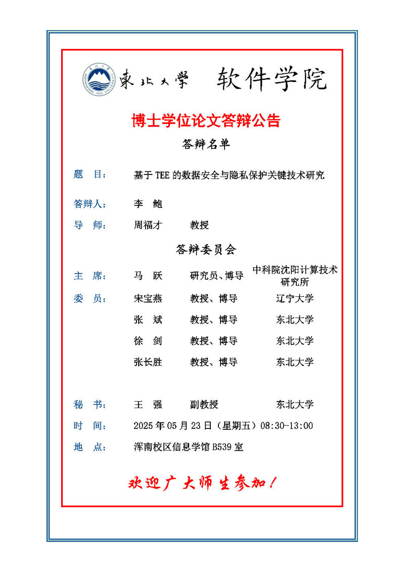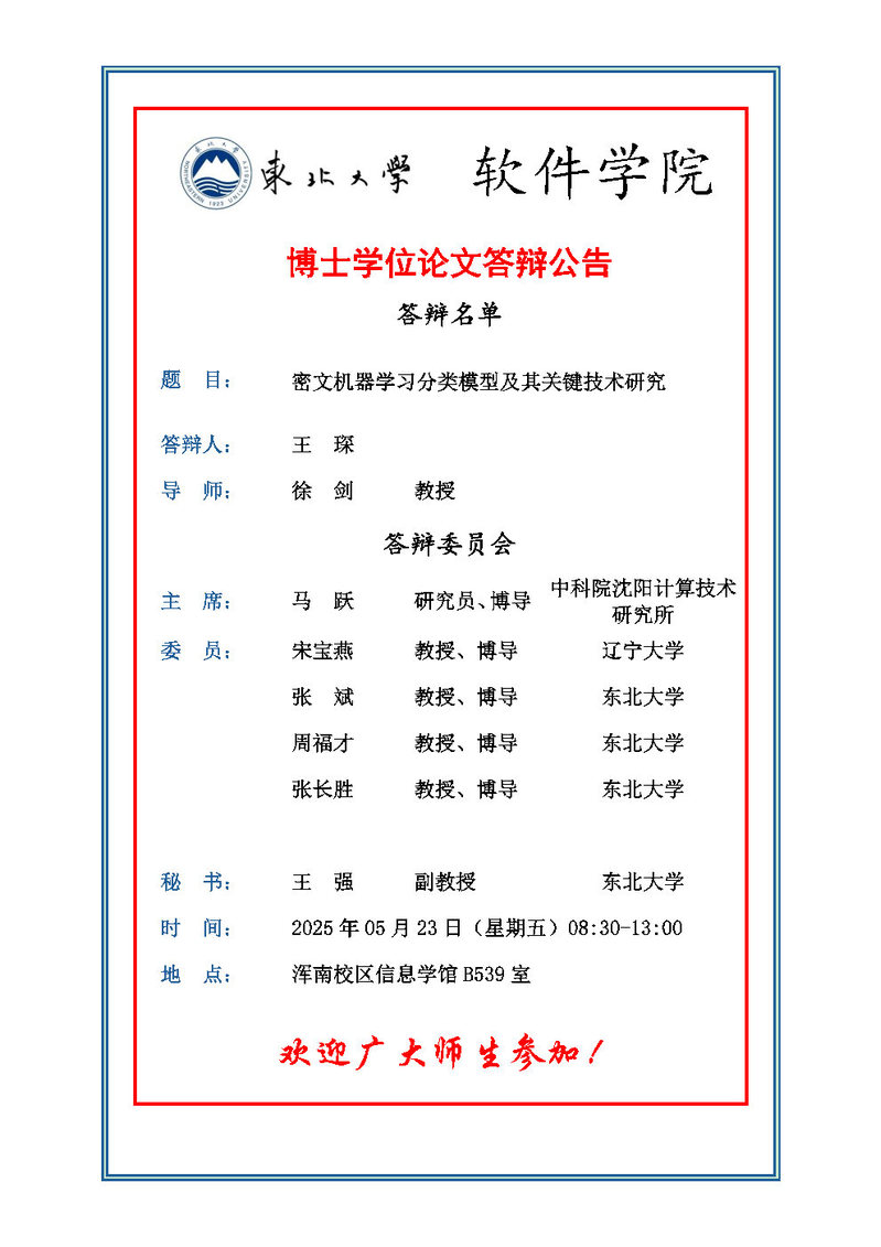 博士答辩公告(5人)