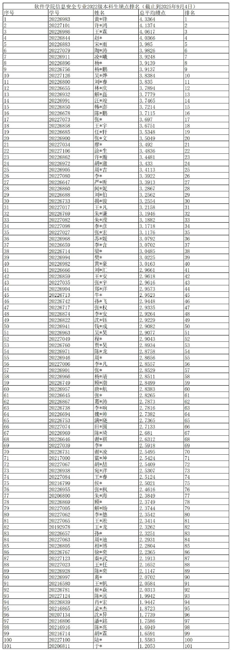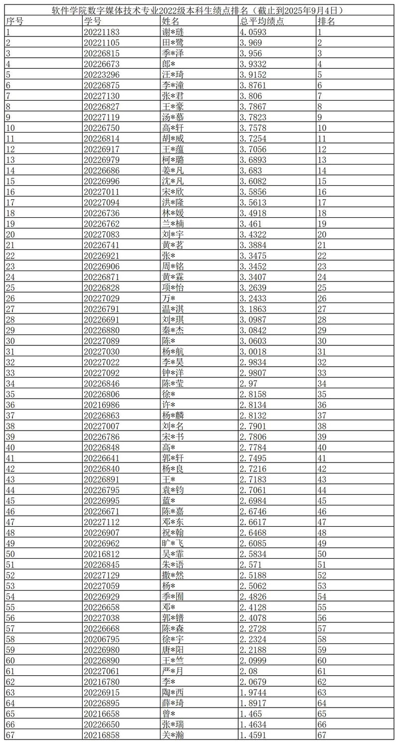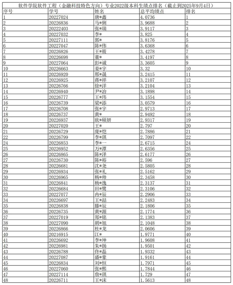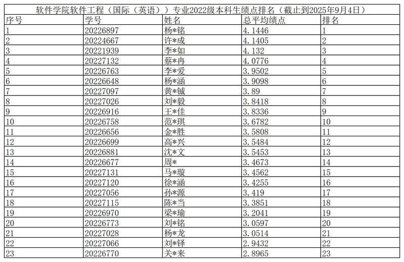 beat365官网唯一22级本科生绩点排名公示(截止到2025年9月4日)