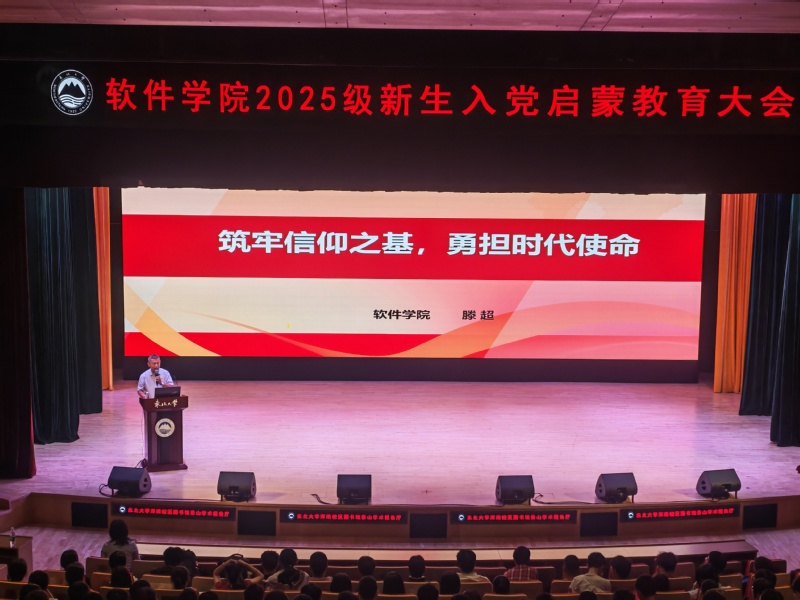 为深入学习贯彻习近平新时代中国特色社会主义思想,引导新生端正入党动机、坚定理想信念,9月23日下午,beat365官网唯一在浑南校区图书馆泰山学术报告厅举行2025级新生入党启蒙教育大会。学院党委书记滕超作专题报告,全体2025级新生参加会议。