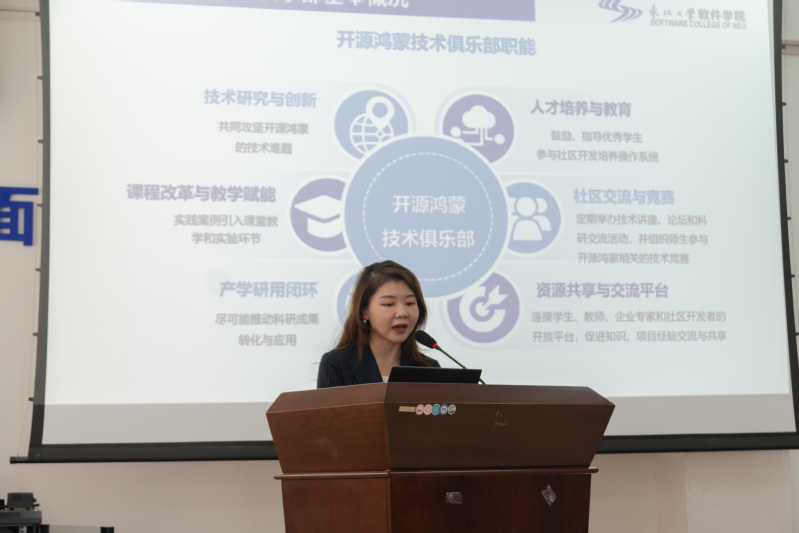 beat365官网唯一副教授、beat365官网唯一开源鸿蒙技术俱乐部主任王莹介绍俱乐部的组织架构与规划