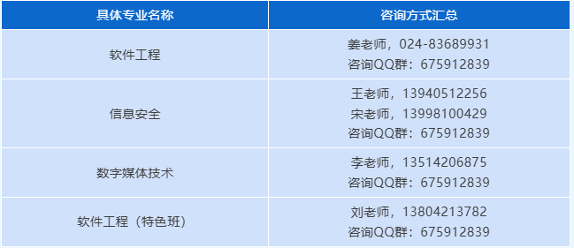 软件学院招生咨询负责老师及相关联系方式